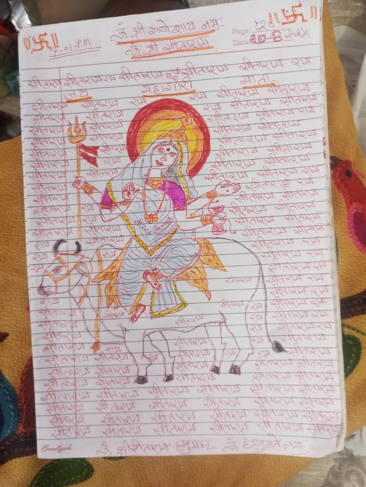 हर दिन का आरंभ ‘सीता राम लेखन’ और नामजप से होता है।